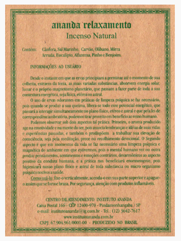 Ananda – Incenso Relaxamento – NATURAL